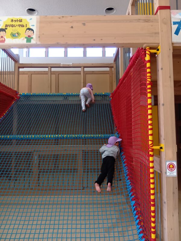 巨大なネットの壁がどーんとありました。それをスイスーイとみんなが登って忍者みたいでした!