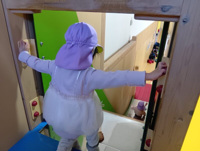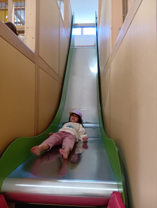 いーてらすに到着。いーてらすの大型遊具を前に速く遊びたくなってきました。こあら組の他にも小さなお友達が遊んでいたので遊ぶ時のお約束をして・・・。