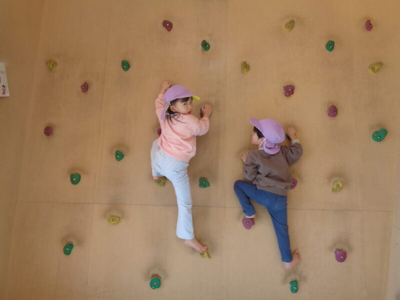 遊具の隣にはボルダリング用の壁も!