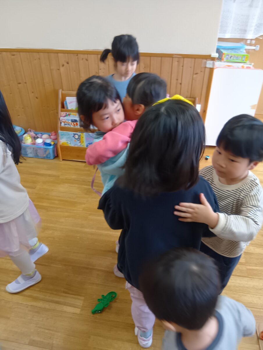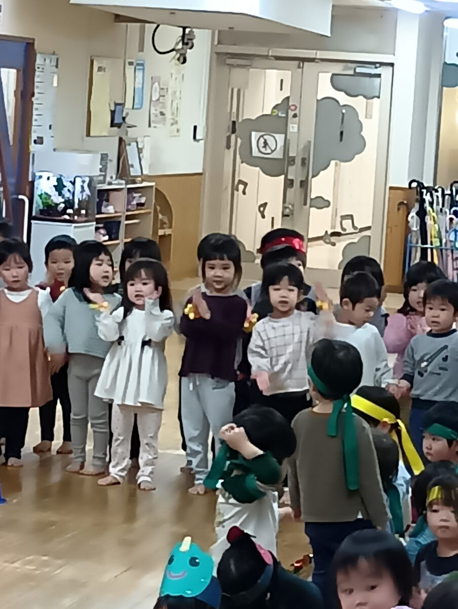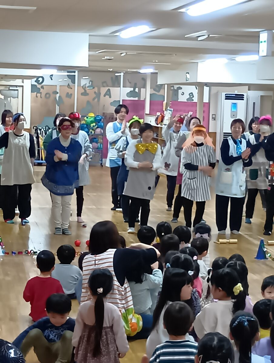 先生たちからのお祝いのダンスもあって、きりん組は大爆笑!面白くて楽しくて、お腹をかかえて笑っていましたよ。