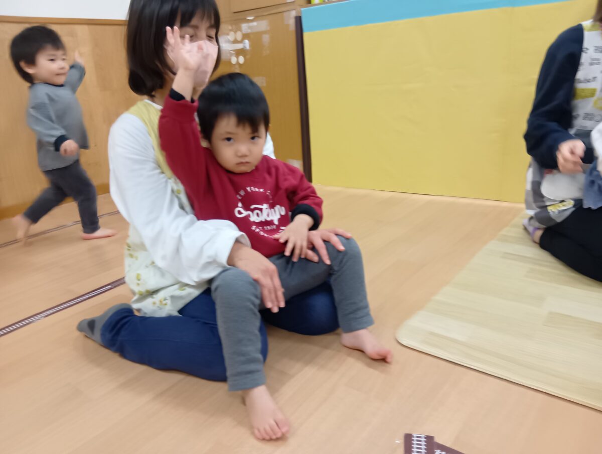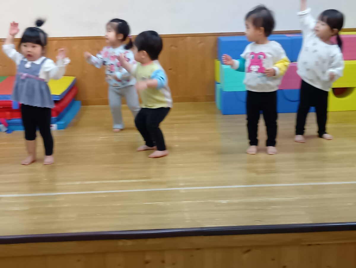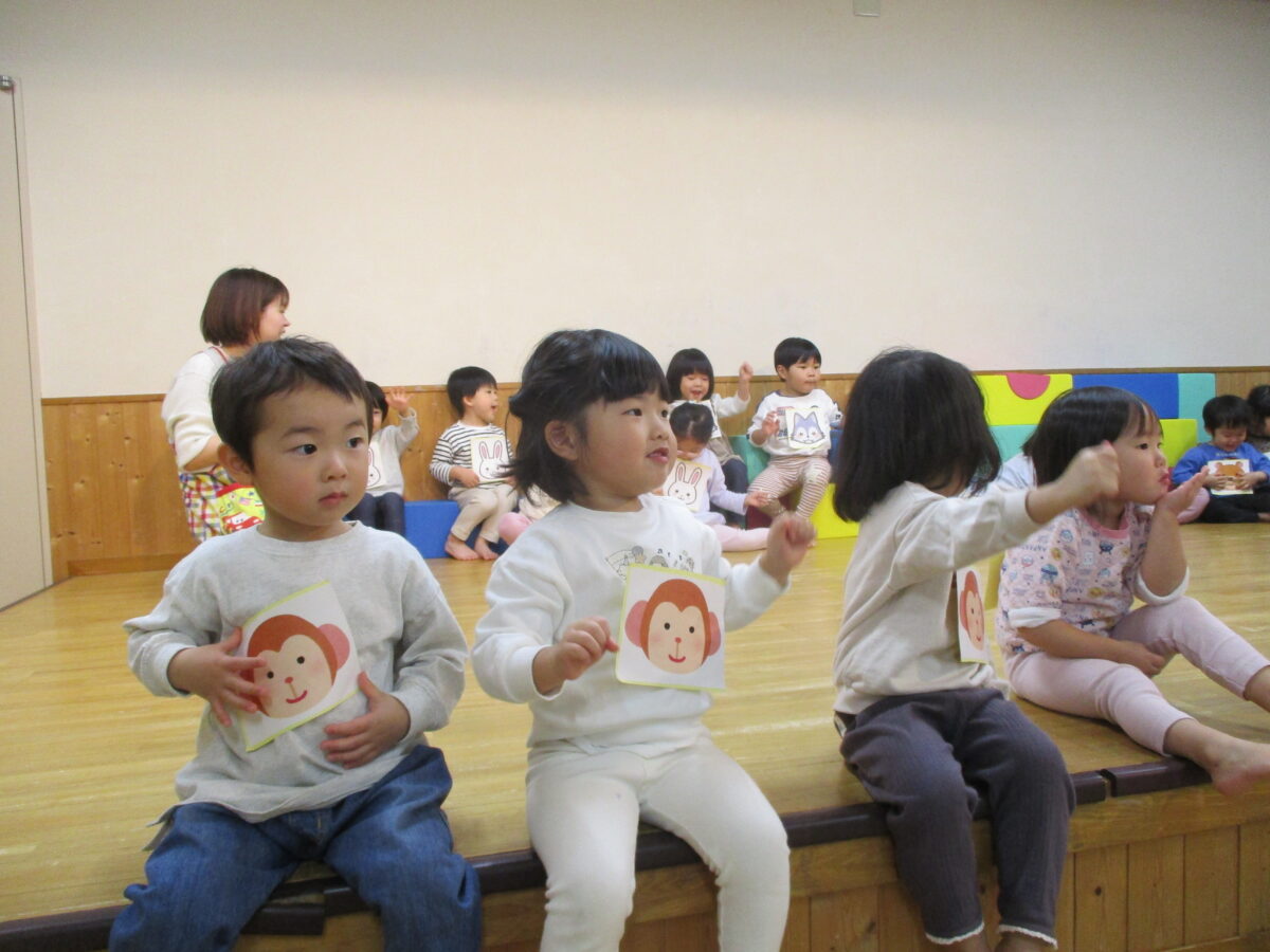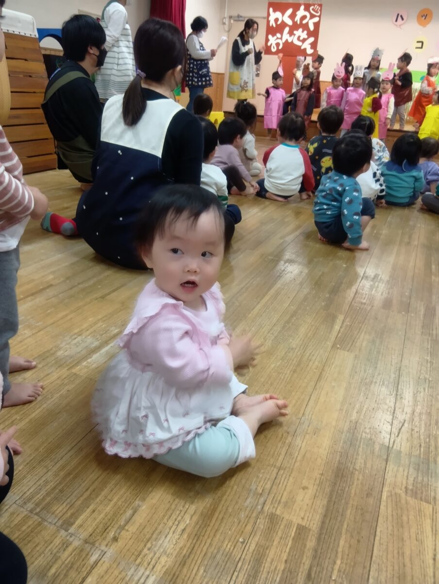 ひよこ組のお友達にとってはホールもとても広い場所に感じるようです。ホールの楽しさも感じてきました。