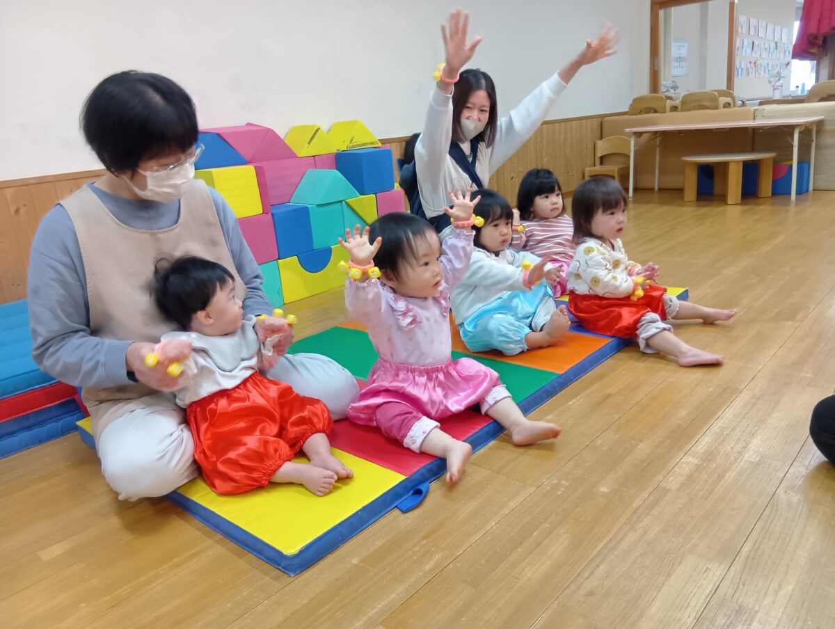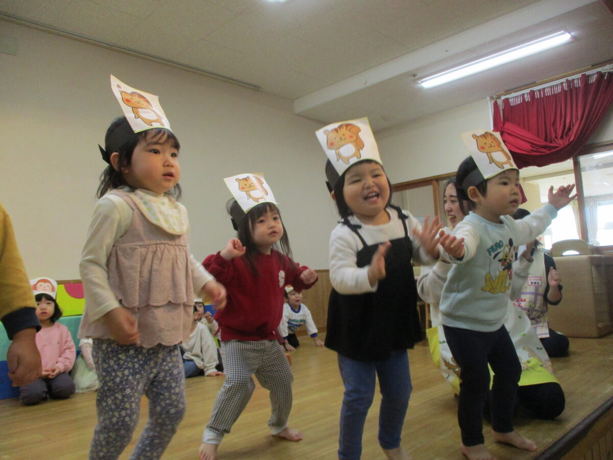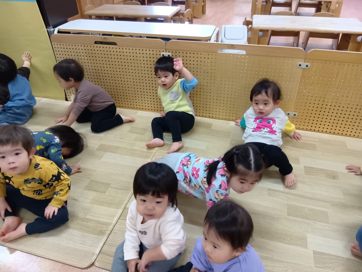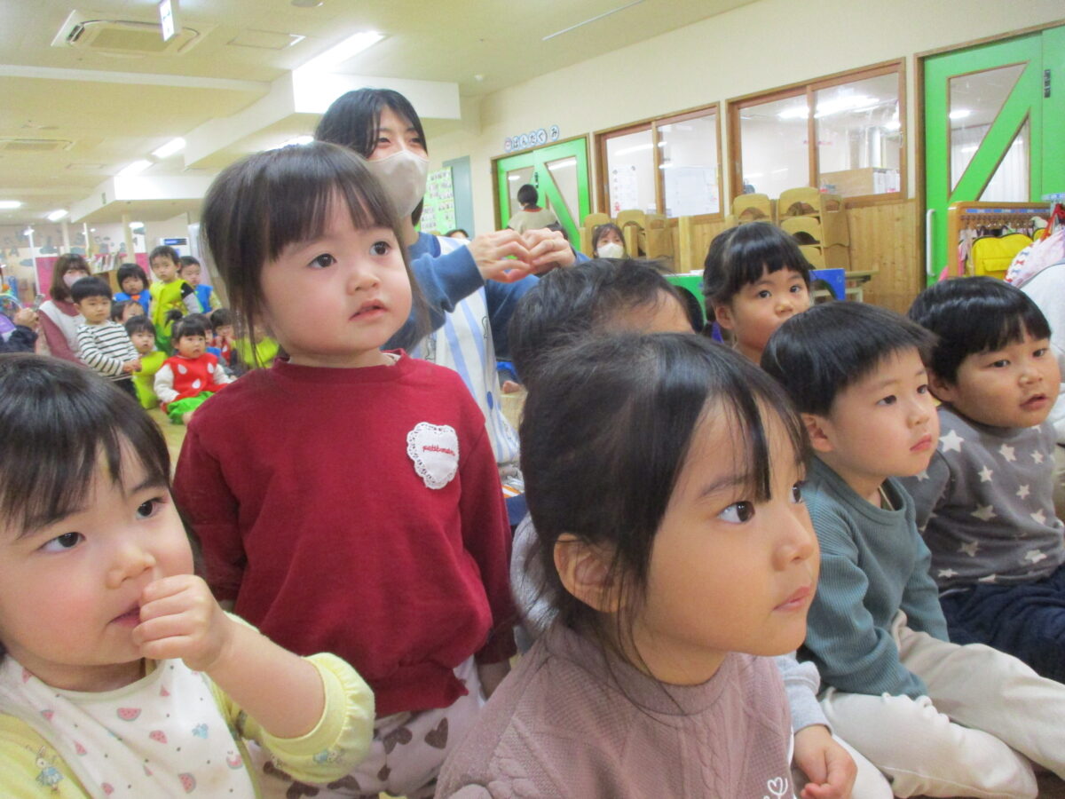 ひよこ組のお友達にとってはホールもとても広い場所に感じるようです。ホールの楽しさも感じてきました。