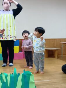 12月に行われるハッピーコンサート(発表会)に向けて、お部屋でダンスを楽しんできたりす組の子ども達