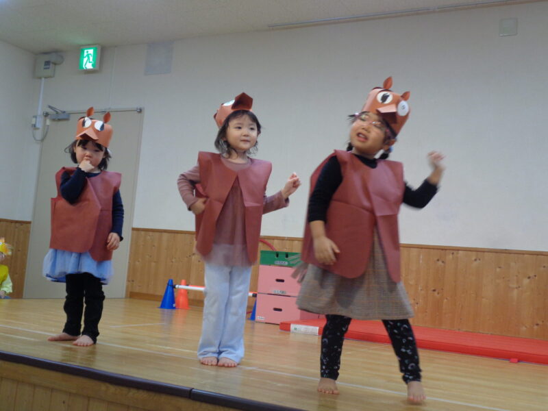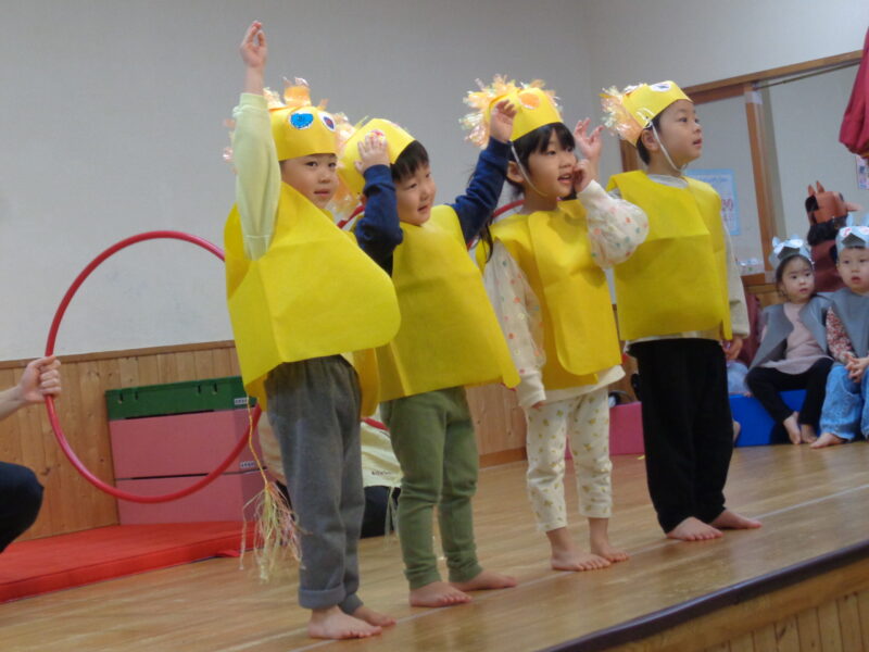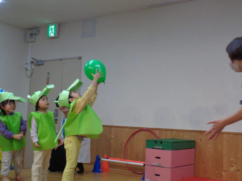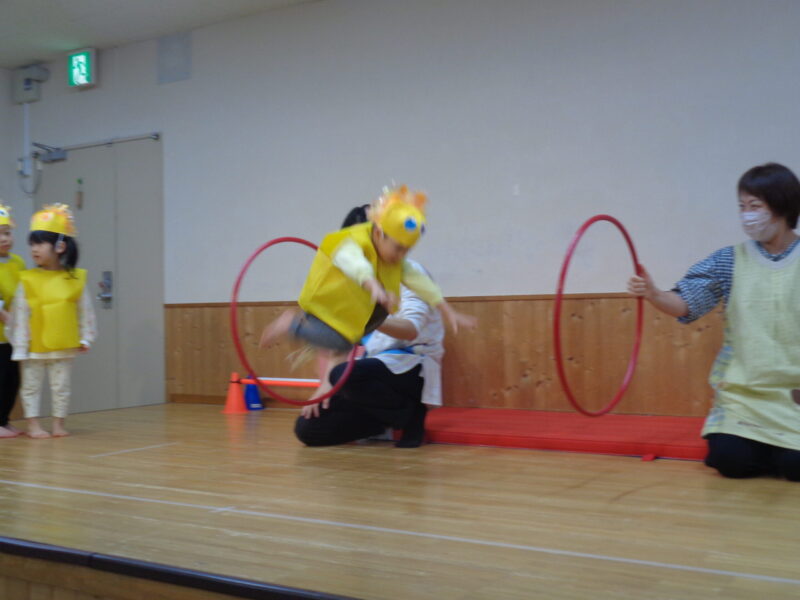 らいおんさん、かんがるーさん、わにさん、うまさん、ぶたさん。それぞれのパフォーマンスとっても素敵でしたよ。お家の人にかっこいいところたくさん見てもらえたね!