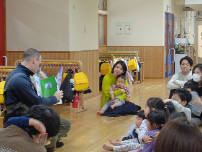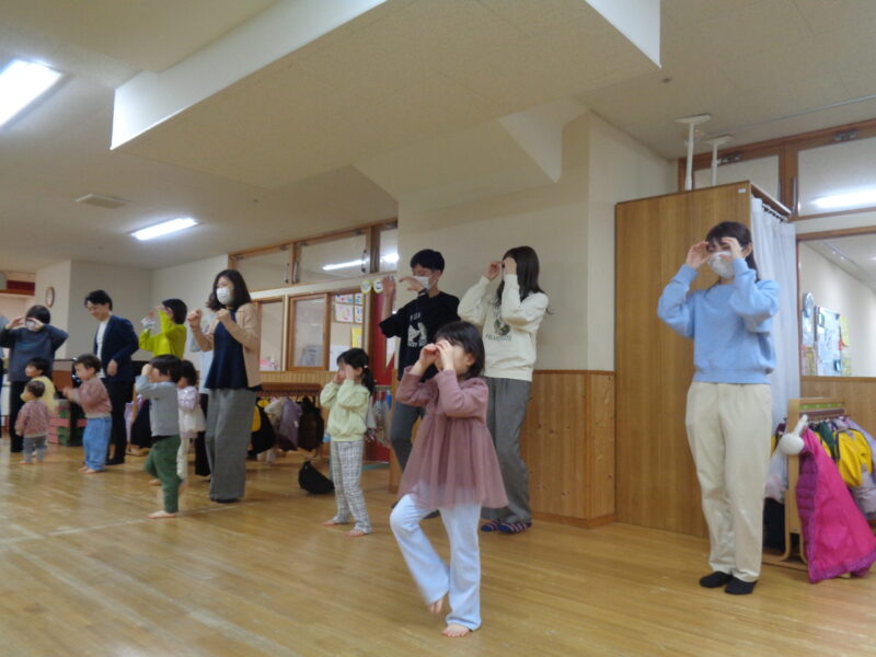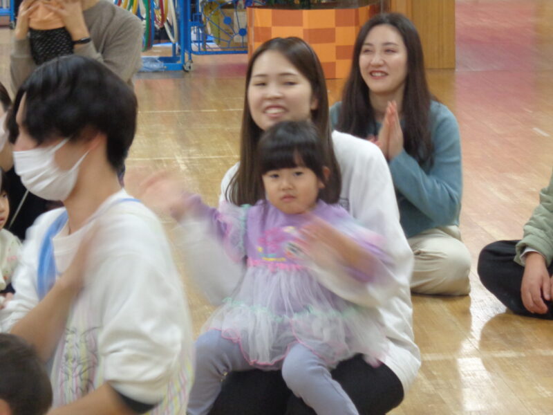最後はべヴィン先生のの英語遊び!お家の人と一緒は初めてでみんなドキドキ、ワクワクしている様子。