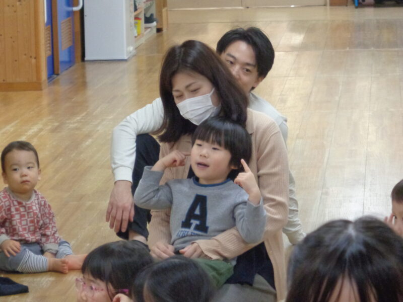 今日はこあら組の保育参観の日。保育室にお家の人がいっぱい!ドキドキするね。