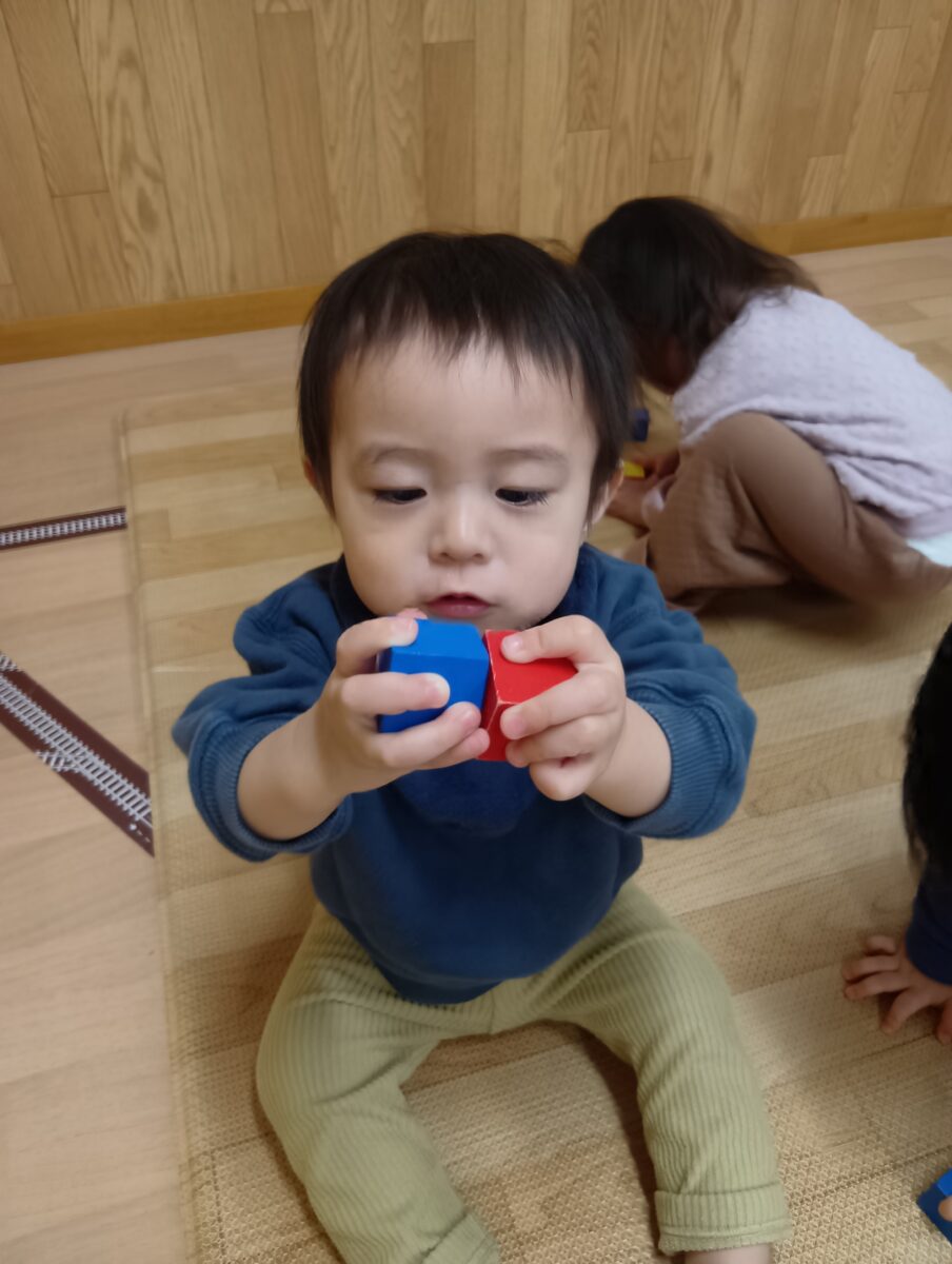 保育者がお手伝いをしなくても、1人で高く積み上げることが出来ました!!