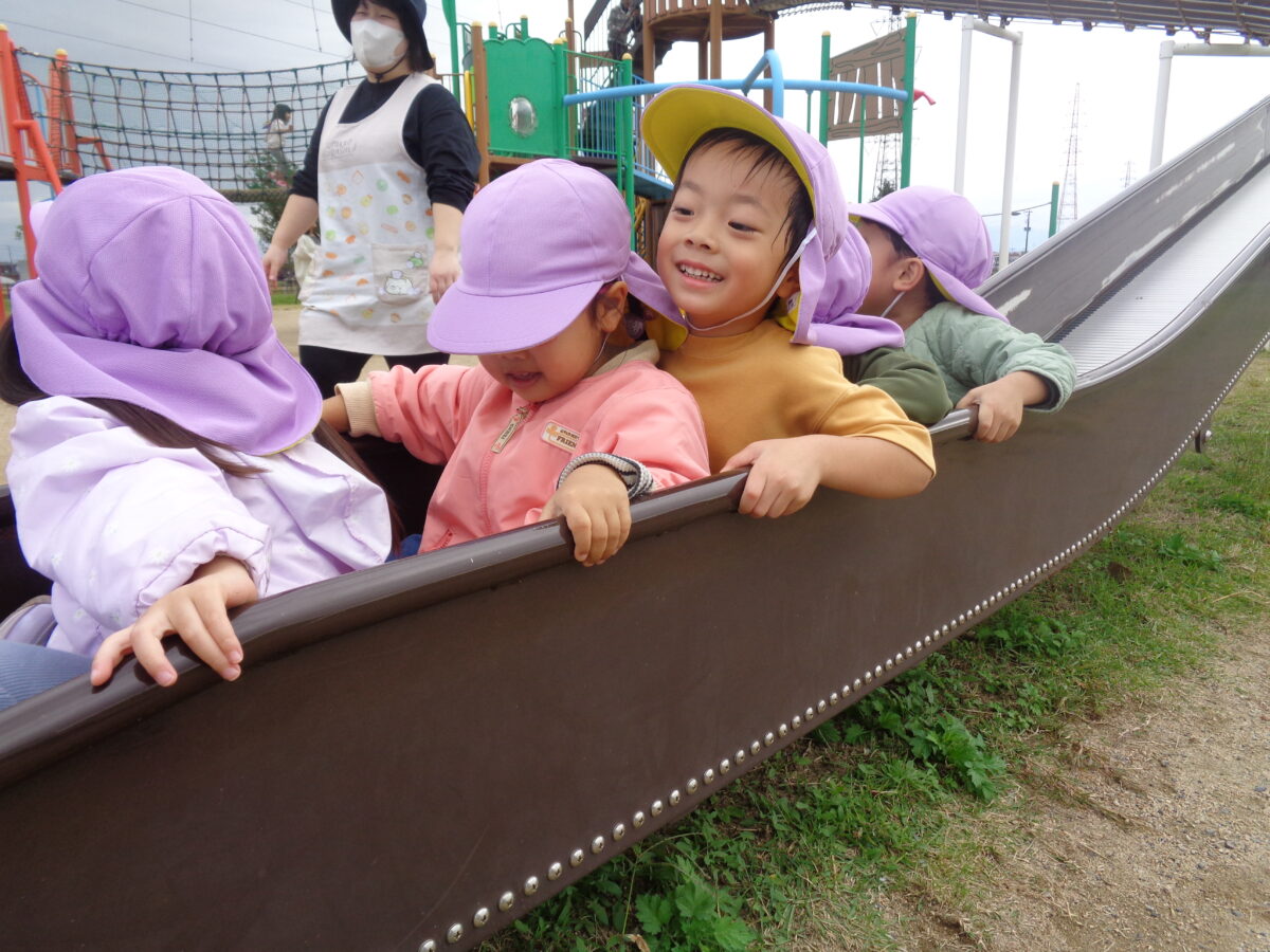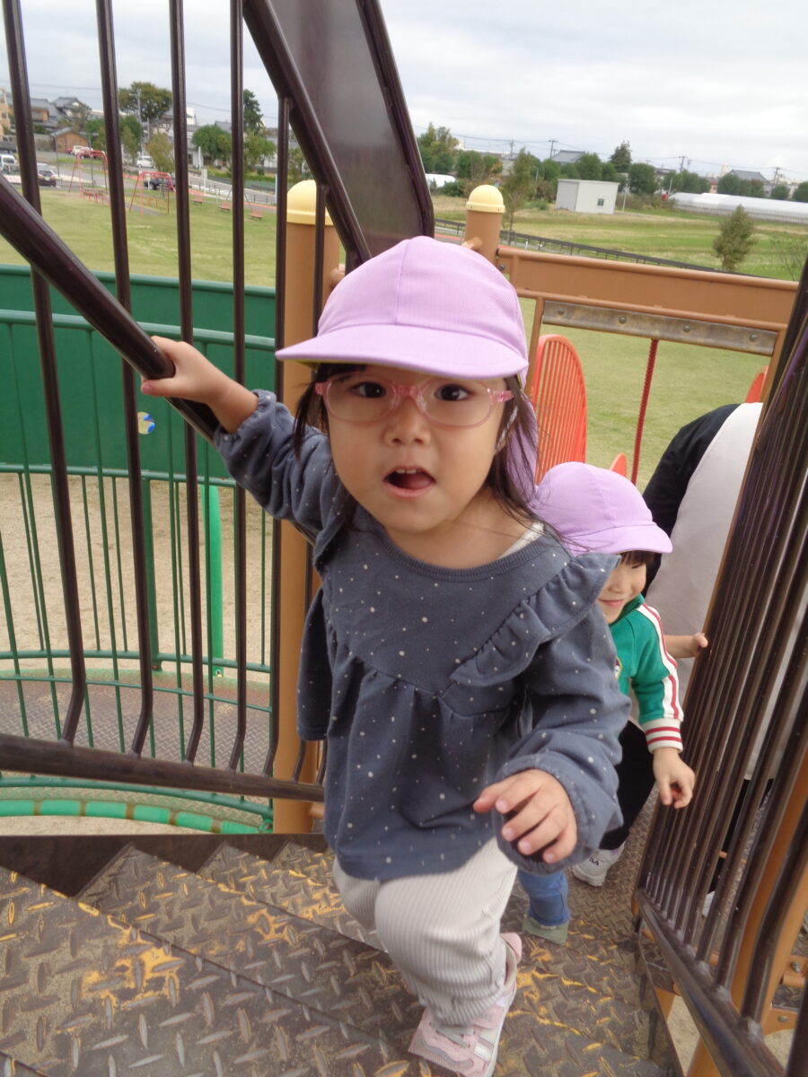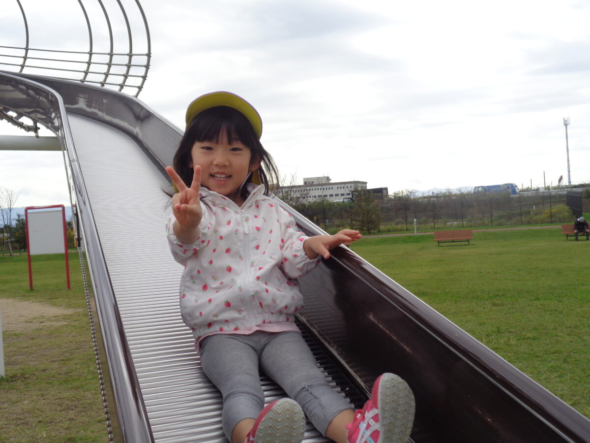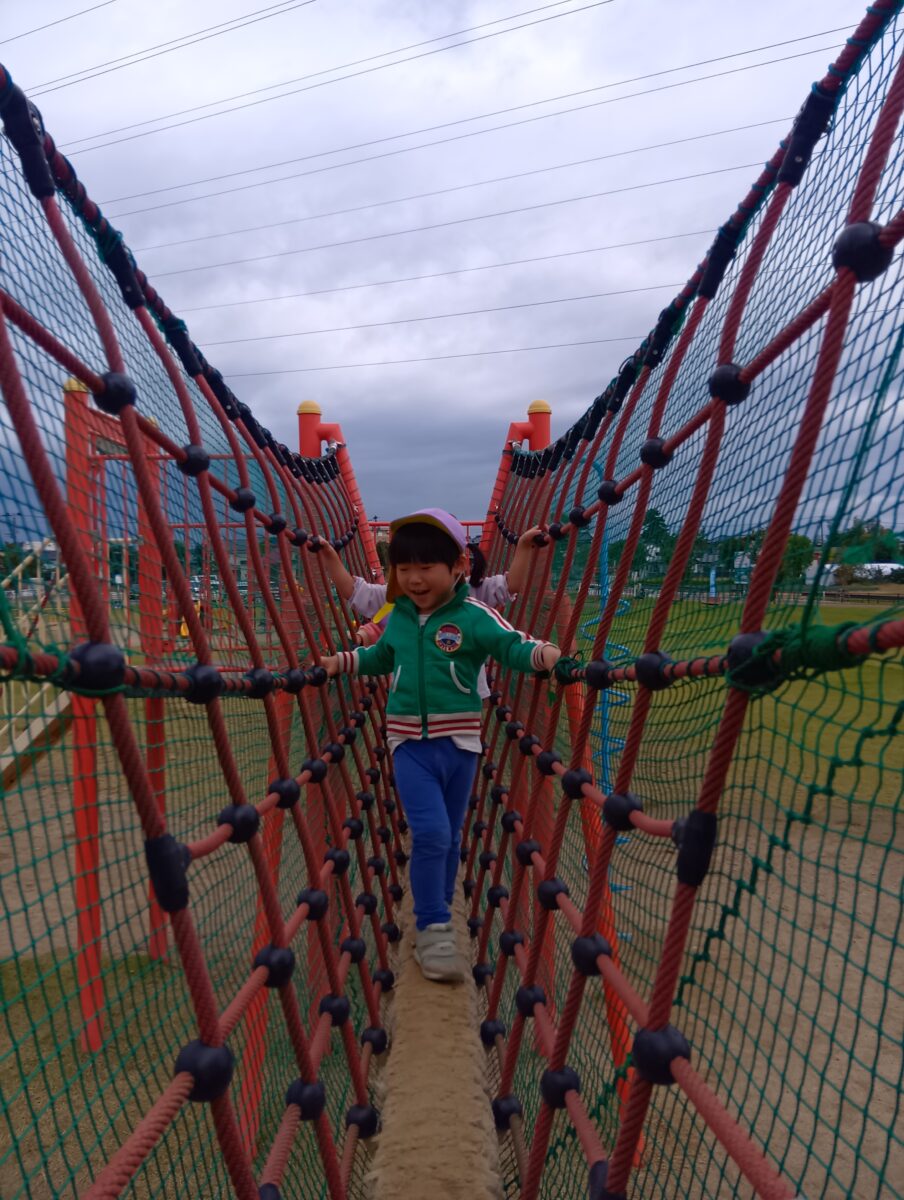 空はどんよりした曇り空でしたが、なんとか雨は降らず、のびのびと大きな遊具で遊んでくることができました!