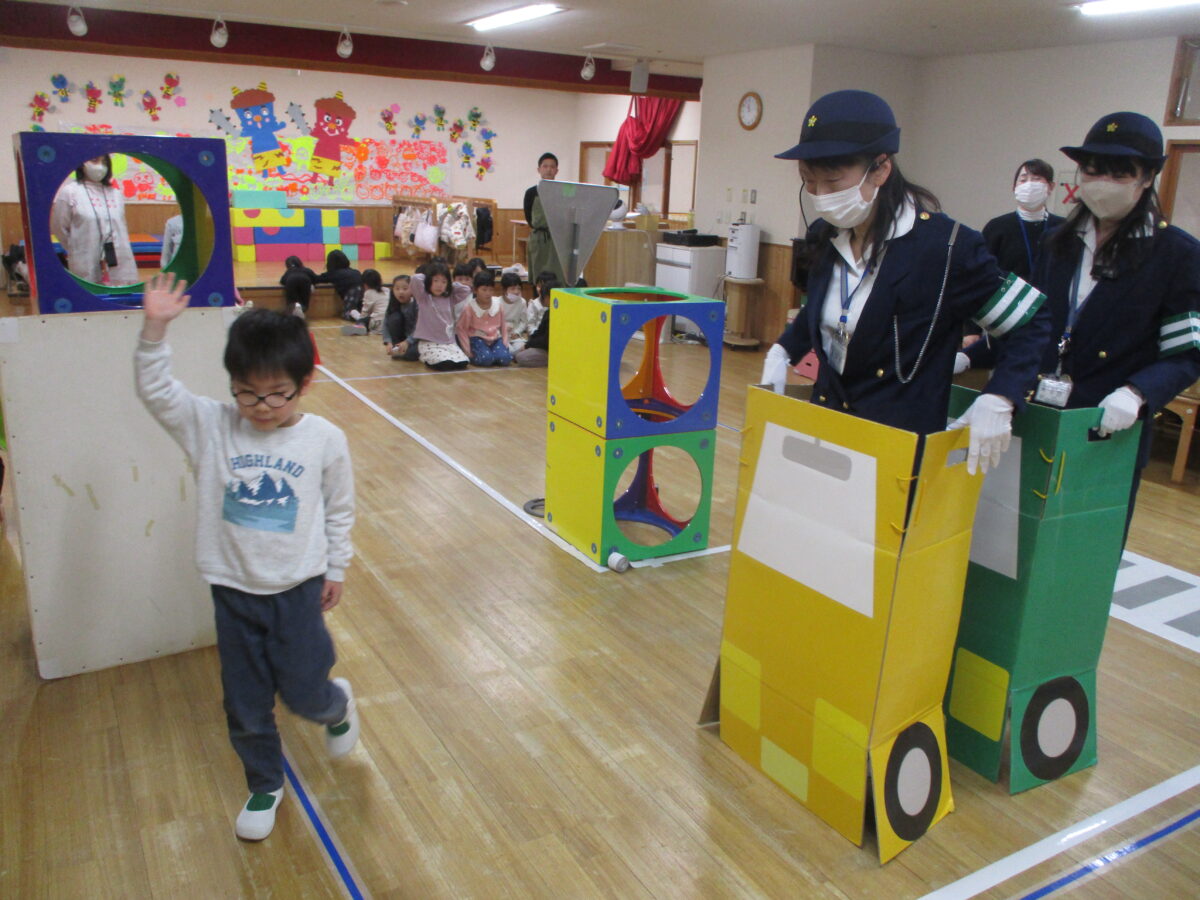 4月からはみんな小学生!交通ルールをしっかりと守って、元気に小学校に行けるようにお話を聞きました。