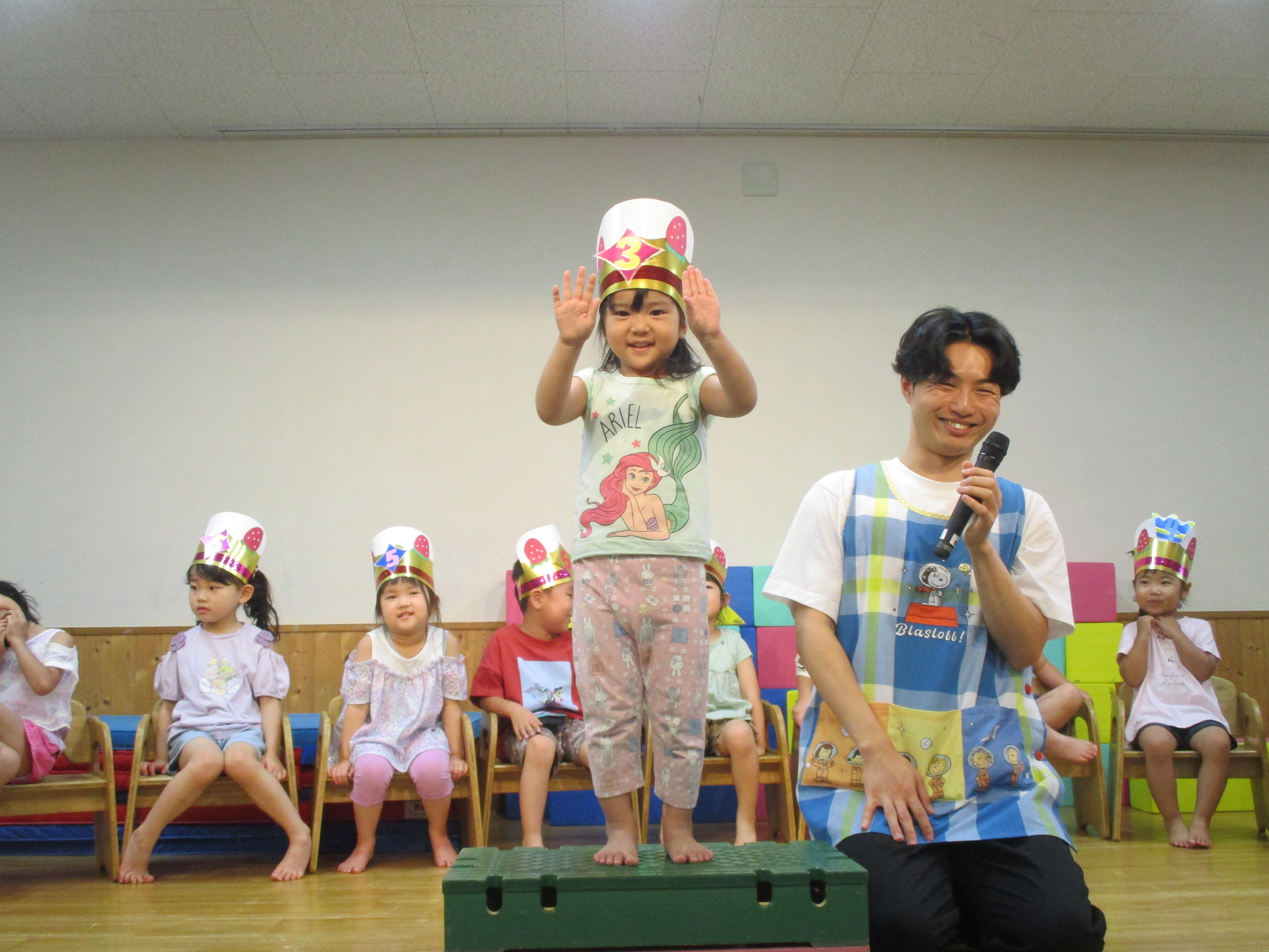 中にはお口に手を当てているお友達も…。