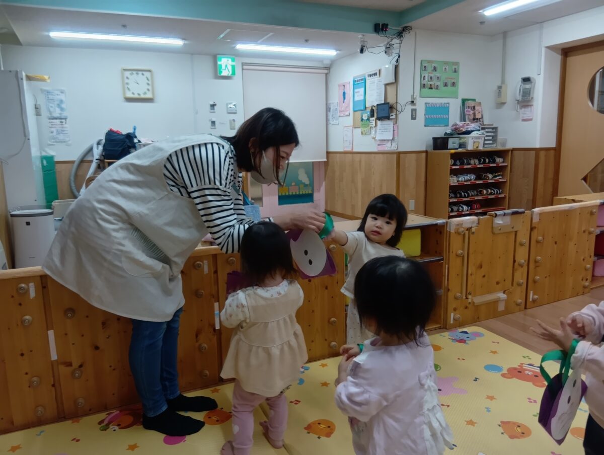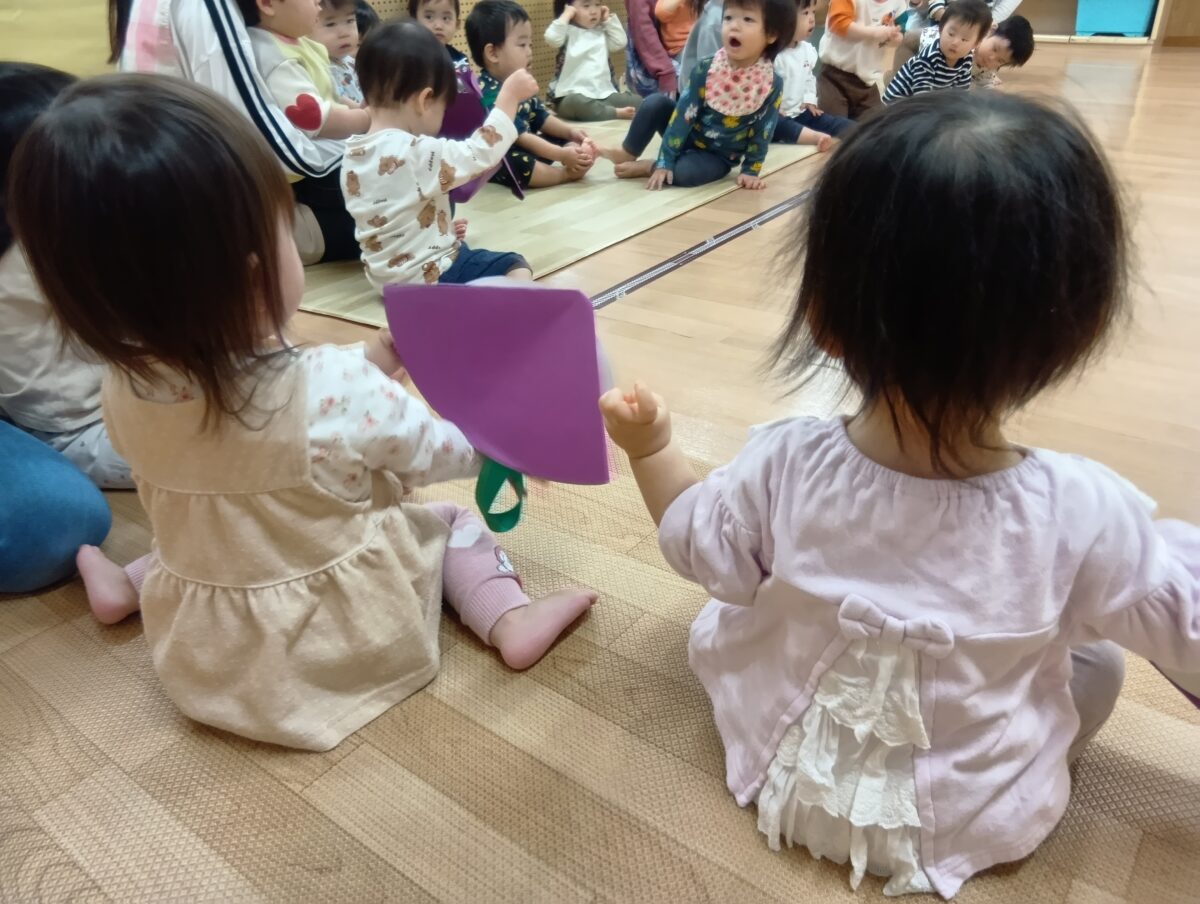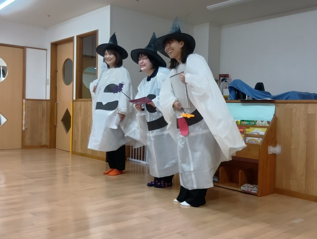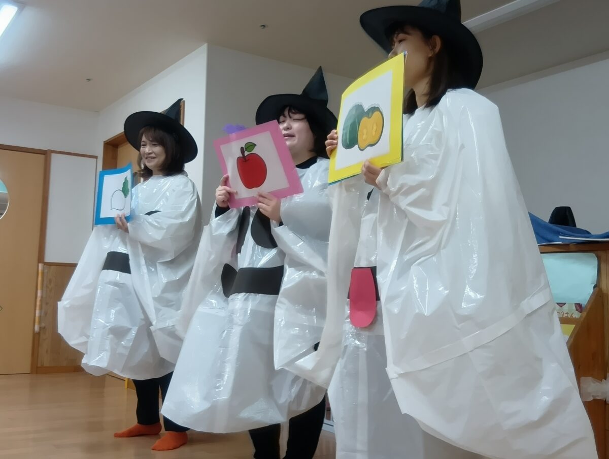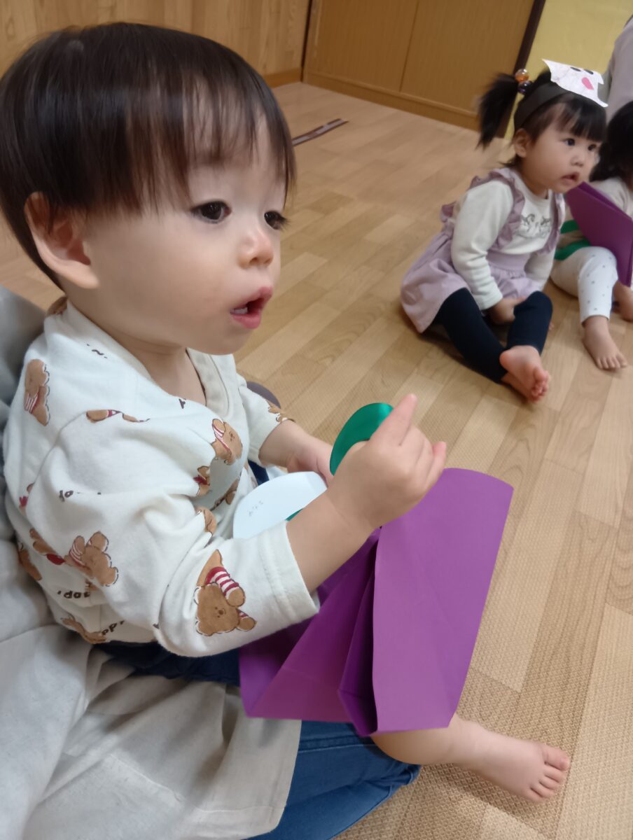 ハロウィンのクイズも楽しく、じーっとよく見ていたりクイズに答えるかのように「はーい!」とお返事をしている子もいましたよ。