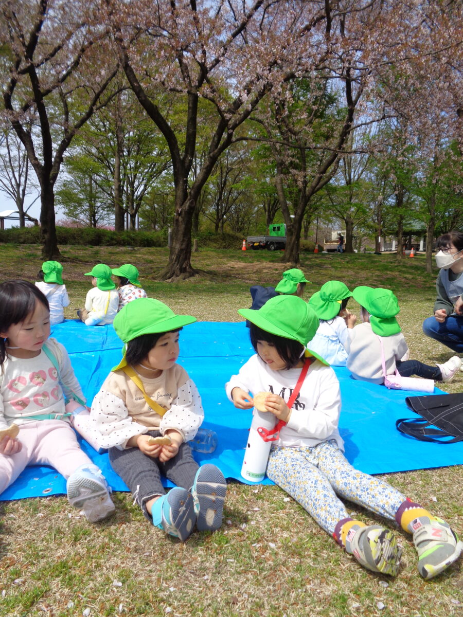 残念ながら満開!とはいきませんでしたが、桜が風で舞う素敵な景色の中、おやつを食べました。