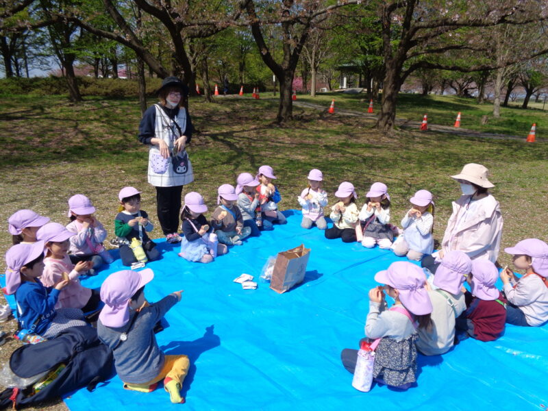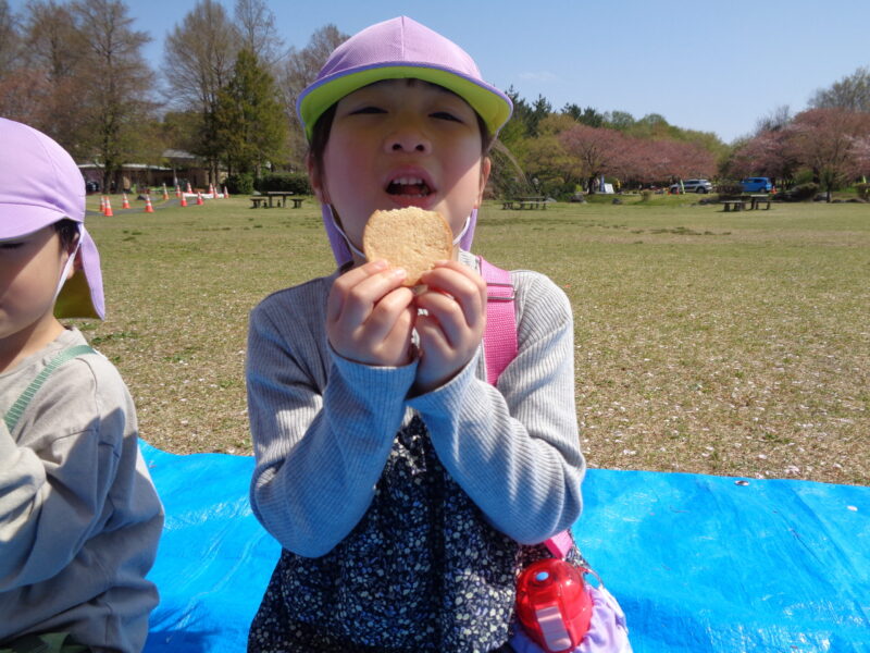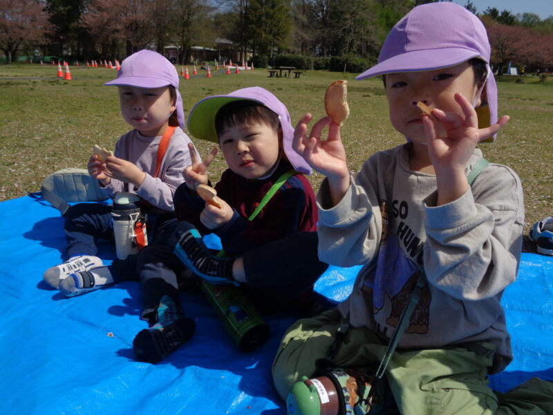 スポーツ公園に着いたら、せっかくなのでみんなが楽しみにしていたおやつタイムに♪「やったー!」「おいしいね~!」と友達とお話ししながらおいしくいただきました。
