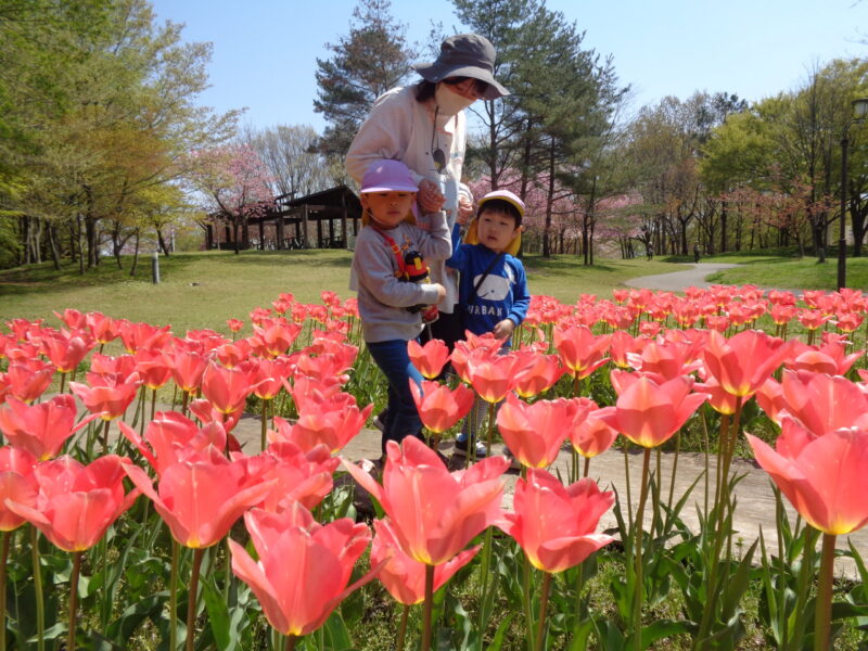 最後に綺麗に咲いているチューリップと一緒に写真をパチリ☆