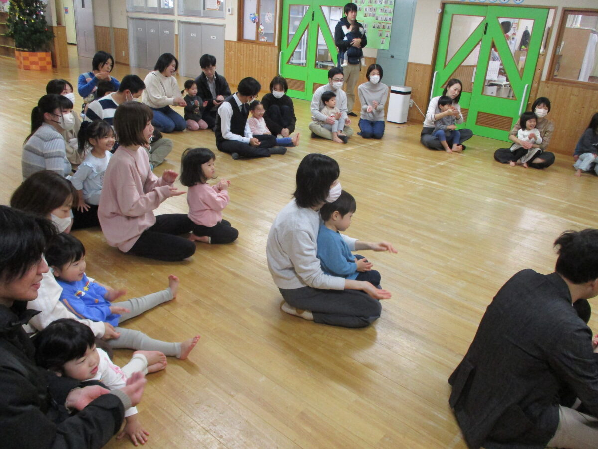 今日は、うさぎ組の参観がありました。いつもと同じように、まずは朝の会から。お父さんお母さんと一緒だからか、いつもよりもニコニコ元気な挨拶が聞こえてきましたよ。