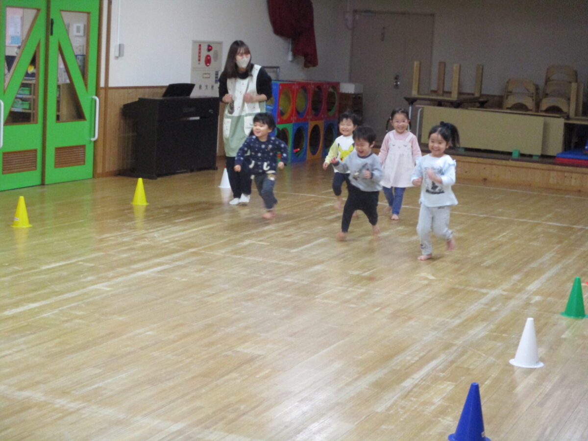 そして今日のメイン、ミニ運動会のスタート!第1種目はかけっこです。位置について…よーいどん!