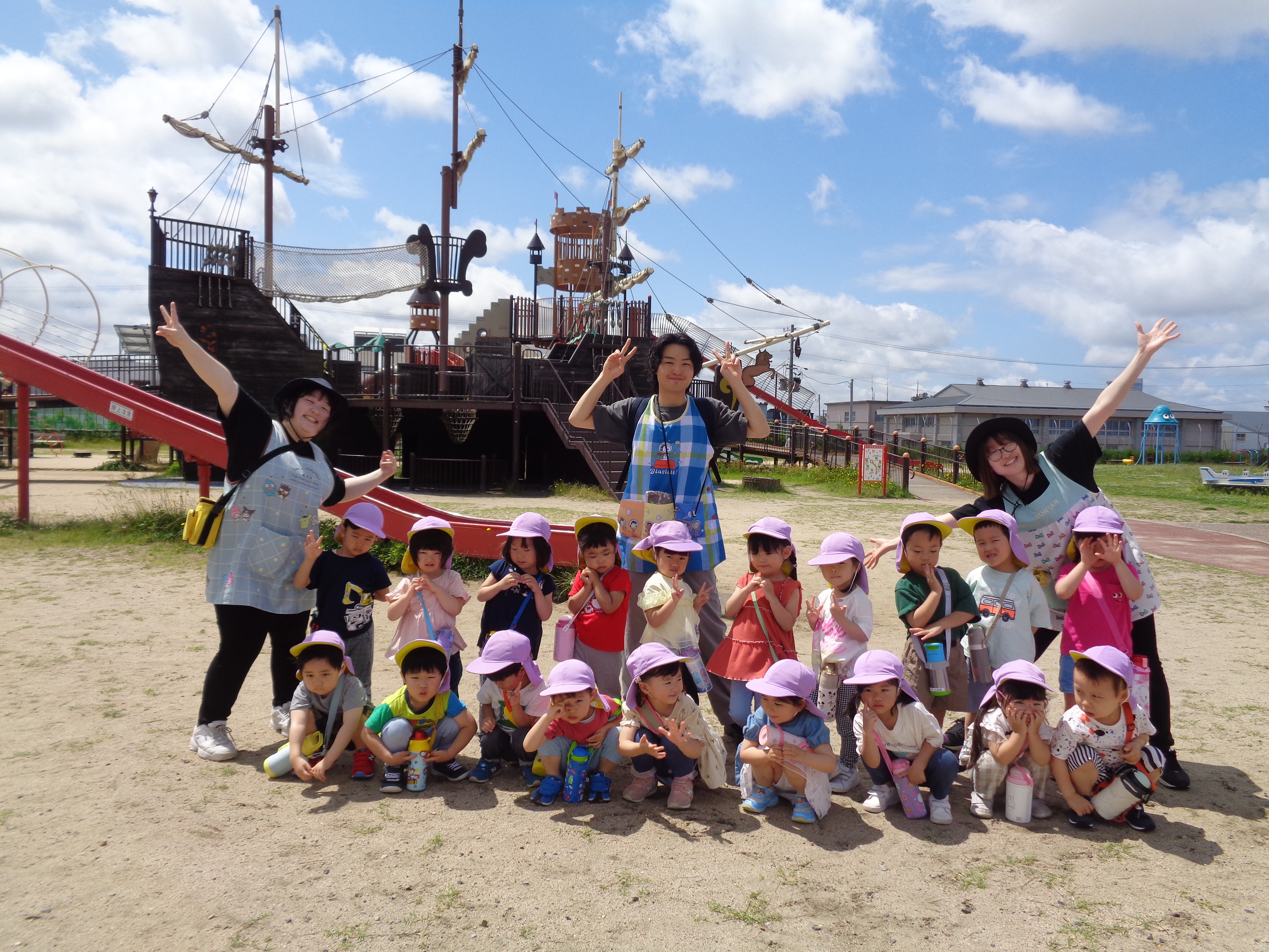 スポーツ公園に到着すると初めての遊具に子どもたちの目がキラキラに☆