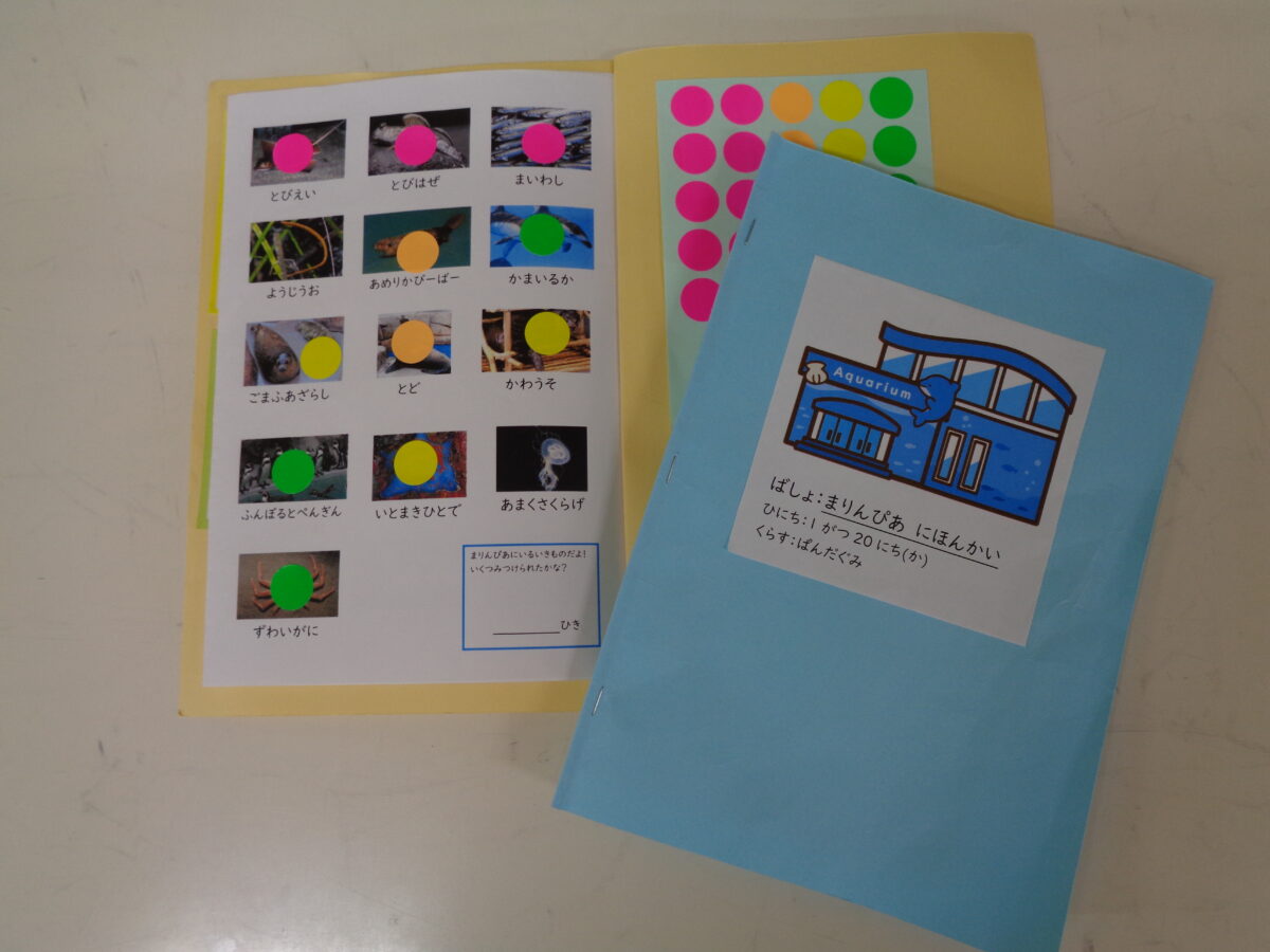 そして、今回は手作りの冊子を持っていきました。“どのコーナーを見て回りたいか”や見つけた魚などにシールを貼ります。