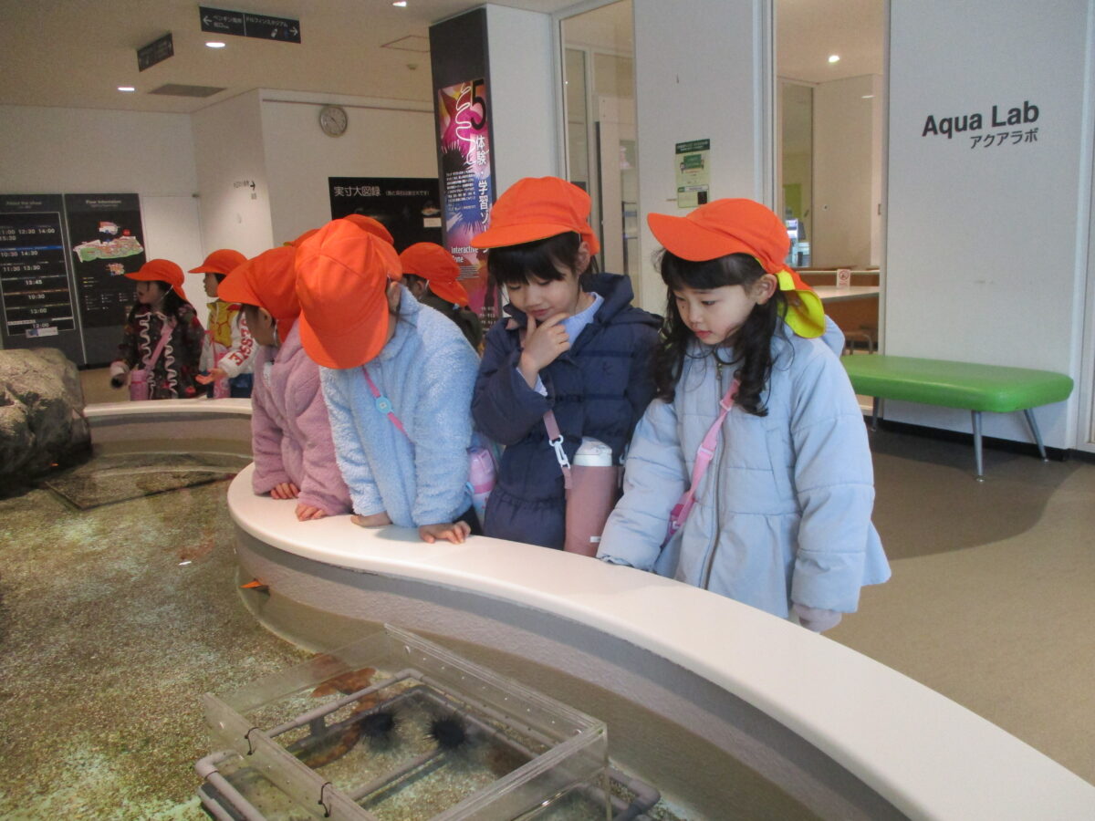 今日は“マリンピア日本海”へ園外保育に行きました。海の横を通る道では「波が凄いね!」「泡も見えるよ」なんておしゃべりしているとバスは到着です。