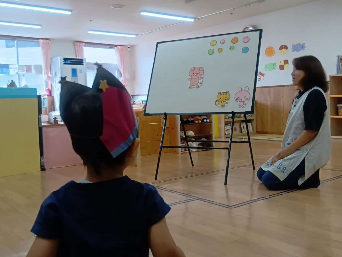 最後はお待ちかねの『お楽しみタイム』保育者からのお話のプレゼントです☆