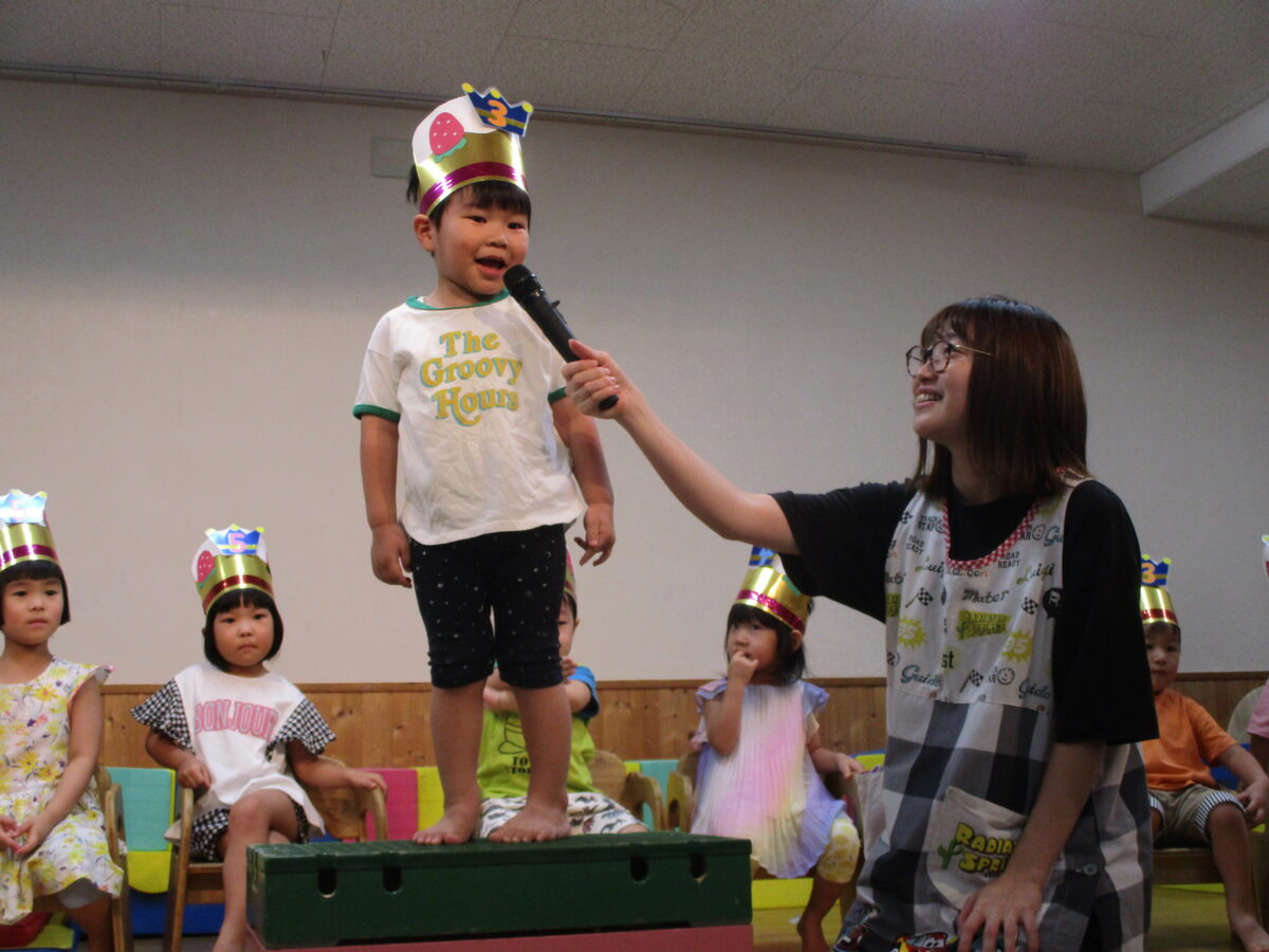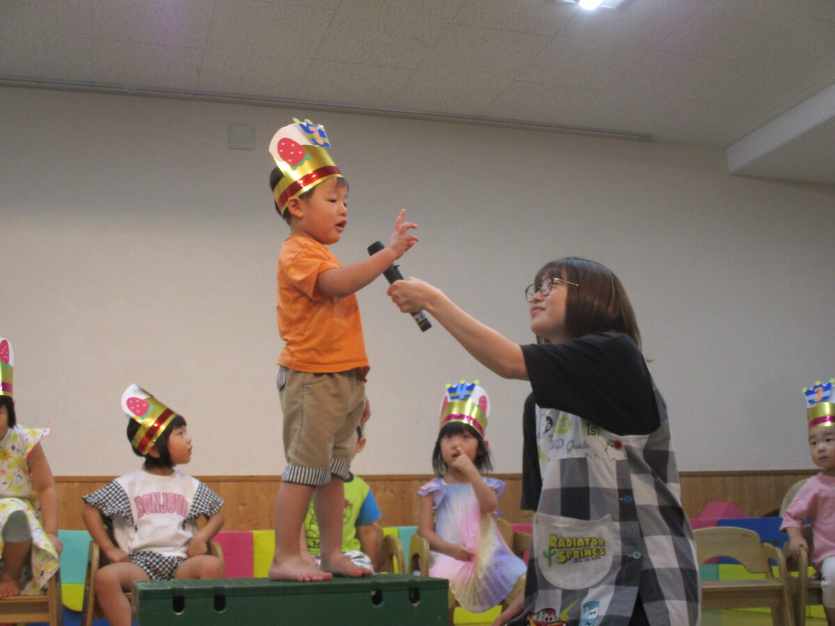 誕生日を迎えたお友達をみんなにご紹介。名前や年齢を聞いたり、「好きな○○」についてのインタビューをしたり、そして素敵なポーズも披露してもらいましたよ!
