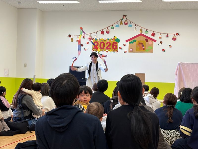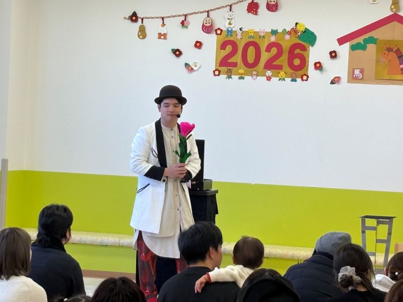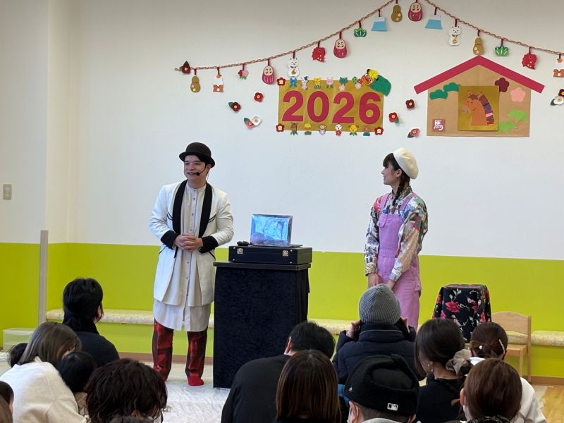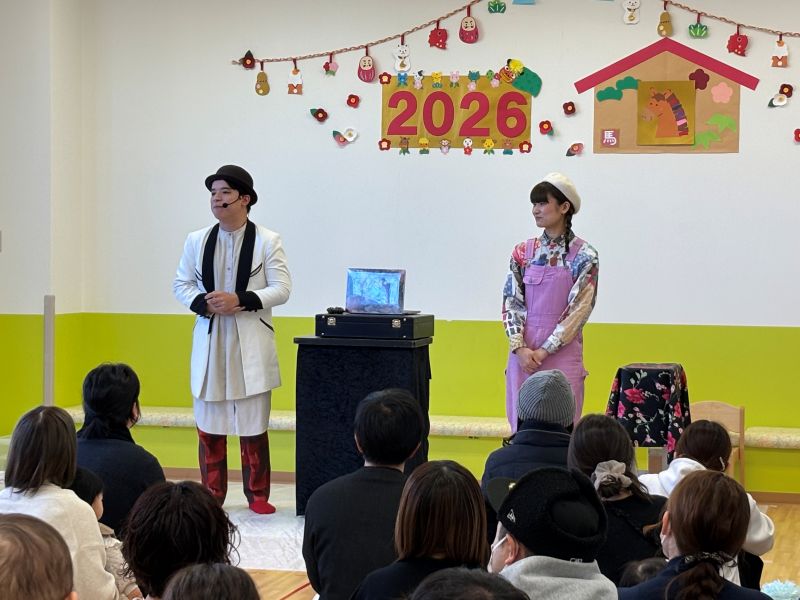 今日は新年お楽しみ会に遊びに来ていただいたみなさん、ひでお兄さん・かこちゃんの素晴らしいショーのおかげでとても素敵なおたのしみ会になりました。
