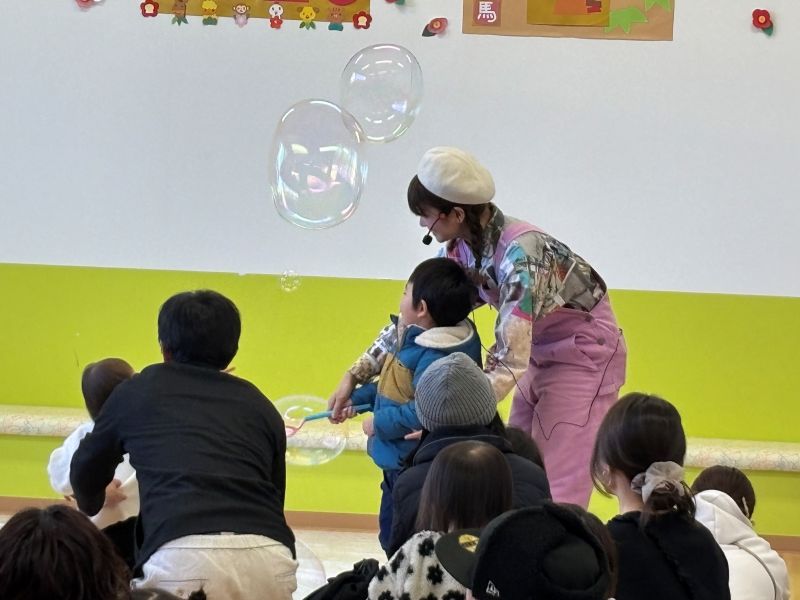 途中、可愛いゲストにしゃぼん玉のお手伝いをしてもらいました😊