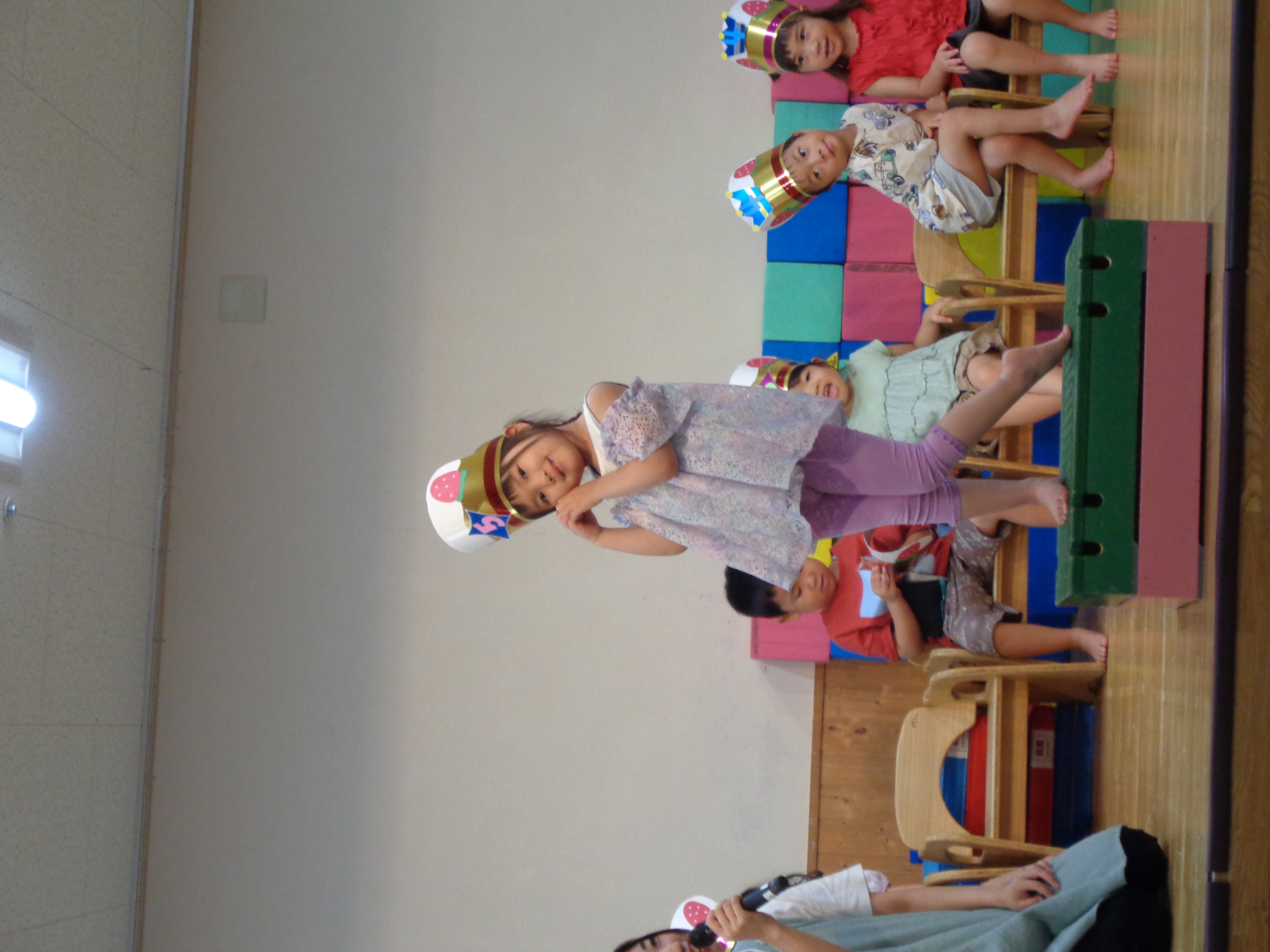 2歳児、3歳児、4歳児、5歳児は、ホールで6月のお誕生会を開きました。